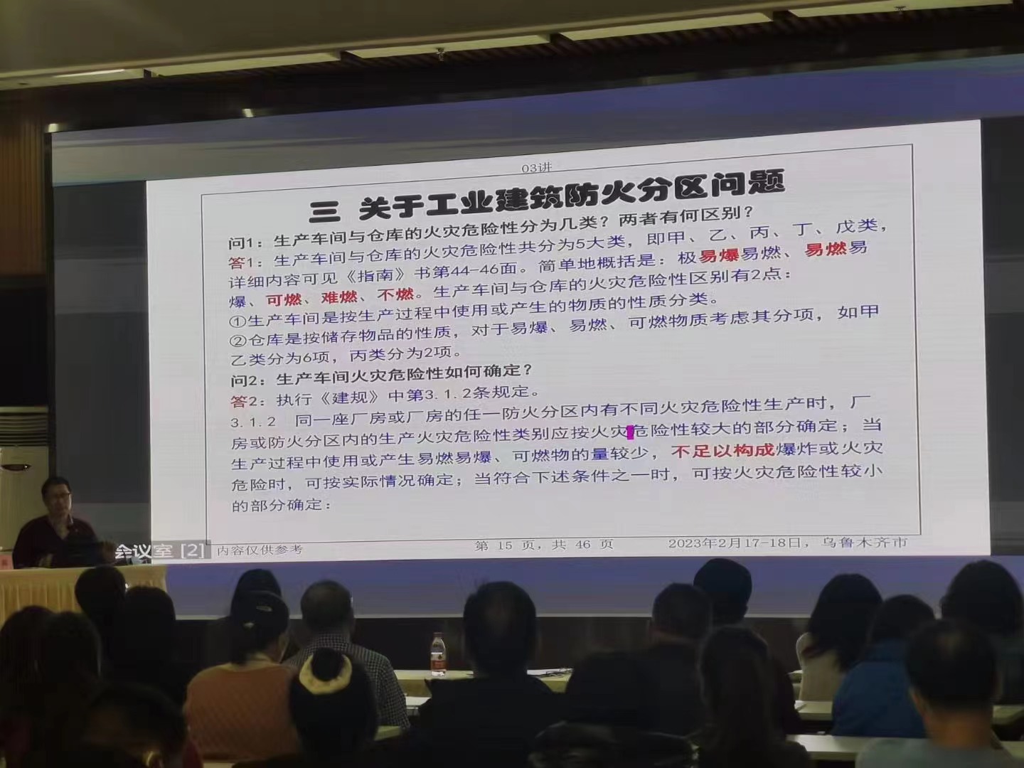 主講專家張?chǎng)卫蠋煟菄?guó)家一級(jí)注冊(cè)建筑師、建筑物設(shè)計(jì)專業(yè)教授級(jí)高級(jí)工程師,上海市工程建設(shè)資深評(píng)標(biāo)專家,是《建筑設(shè)計(jì)防火規(guī)范GB50016-2014(2018年版)實(shí)施指南》編著者。張?chǎng)胃呒?jí)工程師結(jié)合結(jié)合實(shí)際,重點(diǎn)講授了通用規(guī)范與強(qiáng)制性條文、安全出口以及地下室半地下室的區(qū)別問(wèn)題、單層與高層建筑問(wèn)題、登高場(chǎng)地和消防車道問(wèn)題、消防電梯和防火墻防爆墻防火隔墻問(wèn)題、避難層(間)與避難走道問(wèn)題、民用建筑防火分區(qū)和工業(yè)建筑防火分區(qū)問(wèn)題、廠庫(kù)房的防火間距和民用建筑的防火間距問(wèn)題、建筑中庭的防火問(wèn)題、步行街的防火問(wèn)題、建筑中各類庫(kù)房問(wèn)題、鍋爐房的防火問(wèn)題以及變配電站的防火等二十類問(wèn)題。張?chǎng)卫蠋熢谑谡n過(guò)程中,列舉了國(guó)內(nèi)外經(jīng)典范例,在互動(dòng)環(huán)節(jié)與學(xué)員們熱烈交流探討,給新疆的學(xué)員們帶來(lái)一場(chǎng)經(jīng)典專業(yè)盛宴,贏得學(xué)員一致好評(píng)。