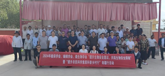 6月14日下午,在喀什疏勒縣庫木力克鄉9村啟動儀式上,新疆植物保護學會理事長、新疆農科院植保所所長、博士生導師郭文超研究員,新疆科技期刊編輯學會理事長張瓊編審,新疆微生物學會常務副理事長龍宣杞研究員,新疆植保學會秘書長張仁福博士,新疆科技期刊編輯學會秘書長王芳編審,新疆微生物學會理事長助理高雁博士,新疆植物保護學會孫曉軍研究員,新疆農科院駐村工作隊7村工作隊副隊長、新疆農業科學院糧食作物研究所副所長楊杰,7村工作隊副隊長、新疆農業科學院糧食作物研究所、研究員雷鈞杰,9村工作隊隊長、第一書記、新疆農業科學院農業機械化研究所副所長蔣永新,9村工作隊副隊長、新疆農業科學院綜合試驗場副場長徐艷文,10村工作隊隊長、第一書記、新疆農業科學院吐魯番農業科學研究所副所長劉國宏,15村工作隊副隊長、新疆微生物學會副理事長、新疆農業科學院微生物應用研究所副所長張志東以及7村、9村、10村、15村農民、基層科技人員與管理干部村農民、基層科技人員與管理干部共計300余人參加了活動。