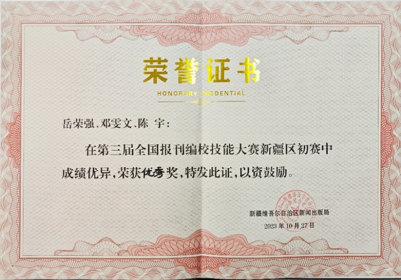 《新疆農(nóng)業(yè)科學(xué)》編輯部榮獲第三屆全國報(bào)刊編校技能大賽新疆區(qū)比賽優(yōu)秀獎(jiǎng)