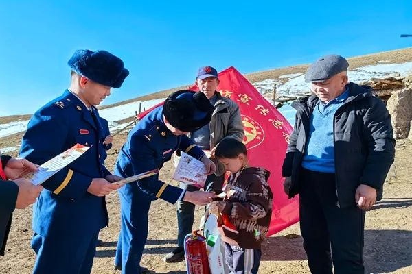 新年伊始,依然寒風蕭蕭,牧場白雪皚皚,日光和煦。距昭蘇縣城90公里的昭蘇鎮庫爾吾澤克冬牧場,昭蘇縣消防救援大隊與昭蘇鎮消防志愿者組建的“馬背消防宣傳志愿服務隊”迎風走向牧場深處,來到牧民努爾居瑪·加哈甫江等牧民家中,深入開展“科技之冬”活動,帶來了新年的祝福、生活物資、滅火器及消防安全常識。