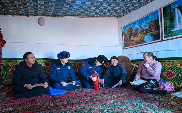 “您好,我們是昭蘇縣消防救援大隊宣傳員,新年了,今天來看看你們。”1月4日,消防宣傳隊走進昭蘇鎮庫爾吾澤克冬牧場牧民努爾居瑪·加哈甫江家中,邁出了農牧區消防走訪第一步。對他們的到來,努爾居瑪·加哈甫江一家十分歡迎。周邊牧民也在努爾居瑪·加哈甫江的招呼下聚在一起,聽取消防志愿服務隊的宣傳。宣傳員張新旺說道:“各位牧民朋友們,你們好啊,我們是縣消防大隊的,新年了,我們也來看看諸位牧民朋友們,也給大家再說說消防安全知識。”“你們看,咱們牧區的房子是木制結構,很漂亮。但是要做好防火工作,不然一著火損失就大了。”期間,大隊宣傳員與志愿者以嘮家常的形式,使用通俗易懂的語言講解牧區家庭火災的預防知識,積極引導牧民群眾要時刻保持清醒認識,充分認識火災對社會、群眾造成的危害,提醒牧民群眾在生活中時刻保持高度警惕。