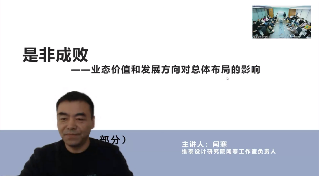 本次專(zhuān)家講堂活動(dòng)主會(huì)場(chǎng)設(shè)在新疆維泰開(kāi)發(fā)建設(shè)(集團(tuán))股份有限公司,通過(guò)線上直播,主、分會(huì)場(chǎng)聯(lián)動(dòng)的方式進(jìn)行。活動(dòng)由維泰設(shè)計(jì)研究院副總建筑師李軍剛主持,協(xié)會(huì)副秘書(shū)長(zhǎng)張春燕在主會(huì)場(chǎng)參會(huì),并特邀新疆建筑設(shè)計(jì)研究院有限公司分院總建筑師陸磐、新疆生產(chǎn)建設(shè)兵團(tuán)建工設(shè)計(jì)研究院有限責(zé)任公司一分院副院長(zhǎng)周勤勉、新疆煤炭設(shè)計(jì)研究院有限責(zé)任公司建筑總工惠躍玲以及建筑設(shè)計(jì)師柴昕曄、浙江匯城建筑設(shè)計(jì)有限公司副總建筑師江華、浙江工業(yè)大學(xué)工程設(shè)計(jì)集團(tuán)有限公司新疆分公司總建筑師毛文全在主會(huì)場(chǎng)參加活動(dòng),在場(chǎng)的設(shè)計(jì)師在自由學(xué)術(shù)交流環(huán)節(jié)積極提問(wèn)互動(dòng)。協(xié)會(huì)多家會(huì)員單位組織相關(guān)專(zhuān)業(yè)的技術(shù)人員集中在各自單位進(jìn)行線上學(xué)習(xí)。