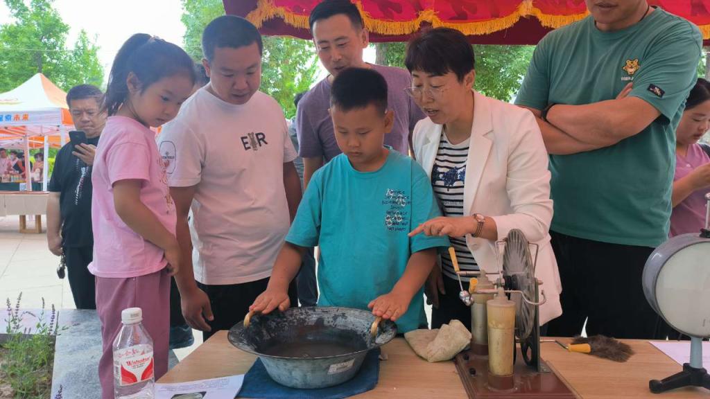 ▲化學與化工學院師生指導學生體驗“化學趣味小實驗”