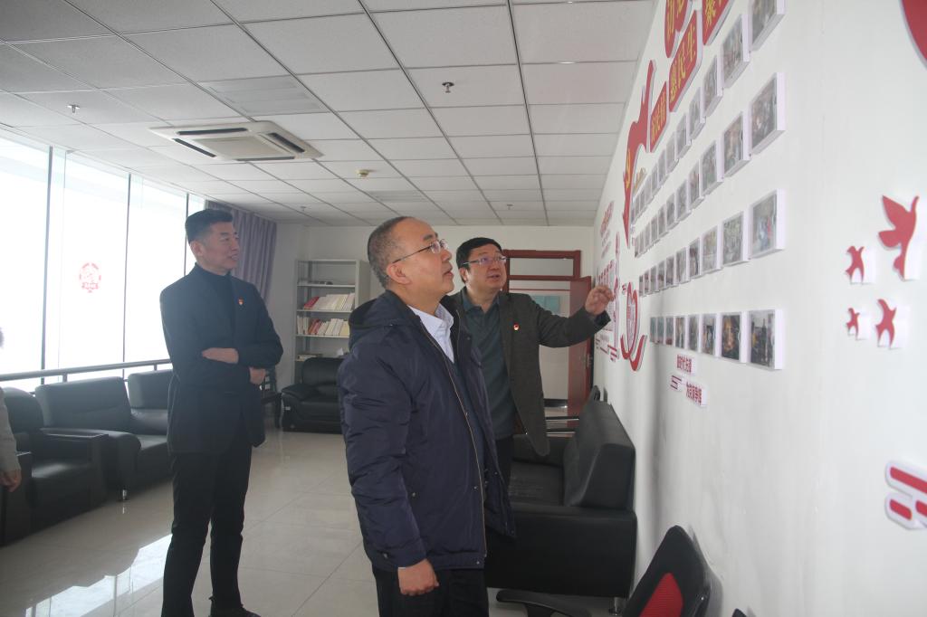 擺曉宏一行首先看望了學會秘書處的工作人員,接著在鄭文新院長的陪同下參觀了聯合黨支部的黨員活動室,聯合黨支部副書記張學根介紹了聯合黨支部的黨建工作情況。