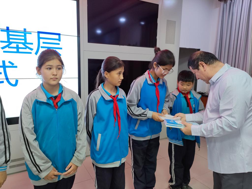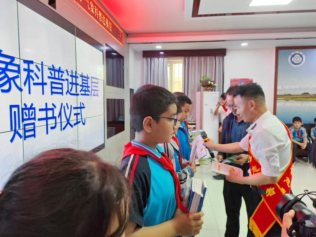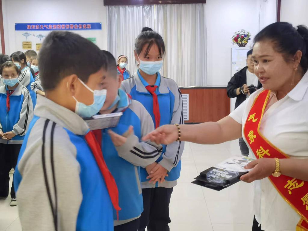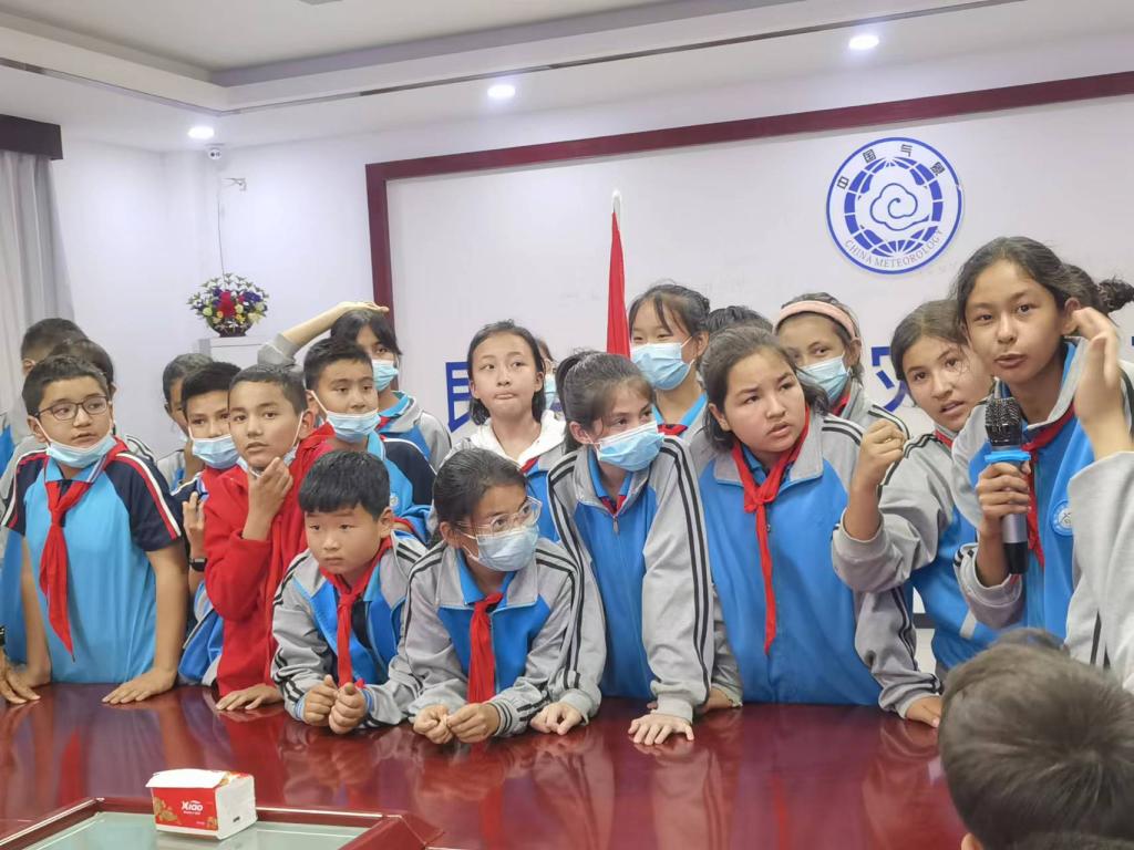 同學們排著整齊的隊伍來到民豐縣氣象局,先后參觀了垂直觀測系統、氣象觀測場以及農業氣象科普試驗基地,觀看工作人員施放探空氣球,參觀科普大篷車、氣象災害預警信號展板、綜合觀測室,觀看氣象科普微視頻、參與互動問答。活動最后,新疆氣象局、新疆氣象學會向民豐縣城小學捐贈了氣象科普圖書。