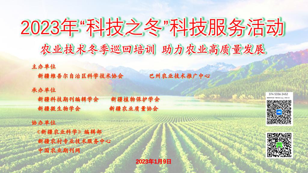 為加快農業技術人員知識更新,提升服務現代化農業能力,2023年1月9日,由自治區科協和巴州農技協推廣中心聯合主辦,新疆科技期刊編輯學會、新疆植物保護學會、新疆微生物學會、新疆農業質量協會承辦,《新疆農業科學》編輯部、新疆農村專業技術服務中心、中國農業期刊網協辦的冬春“科技之冬”活動在巴州正式啟動。