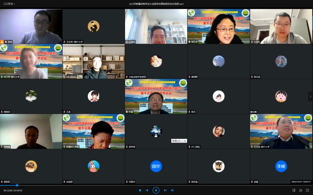 2022年12月31日,新疆動物學會2022年學術研討會暨第十三屆青年學術論壇以騰訊會議線上方式進行,本次會議由新疆動物學會主辦,新疆農業大學生命科學學院、新疆大學生命科學與技術學院、新疆生物資源基因工程重點實驗室、中國科學院新疆生態與地理研究所承辦。新疆農業大學生命科學學院院長譚敦炎教授做會議開場致辭。論壇由新疆動物學會秘書長胡紅英教授主持。