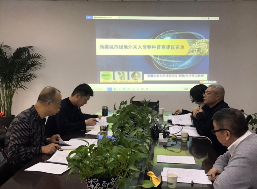 新疆農(nóng)業(yè)大學(xué)林學(xué)與風(fēng)景園林學(xué)院阿迪力?沙塔爾教授對(duì)全疆的外來(lái)物種入侵情況進(jìn)行了PPT講解,重點(diǎn)圍繞近幾年南北疆的發(fā)病情況、種類(lèi)、造成的危害及侵害的范圍進(jìn)行了詳細(xì)的解說(shuō)。烏魯木齊市林業(yè)有害生物防治檢疫站(市草原監(jiān)理站)穆朝蕊工程師對(duì)烏魯木齊市各區(qū)外來(lái)物種入侵情況進(jìn)行講解。與會(huì)專(zhuān)家結(jié)合住建部外來(lái)入侵物種普查建議名單,與新疆城市綠地南北疆實(shí)際,共梳理30余種外來(lái)入侵物種名單。