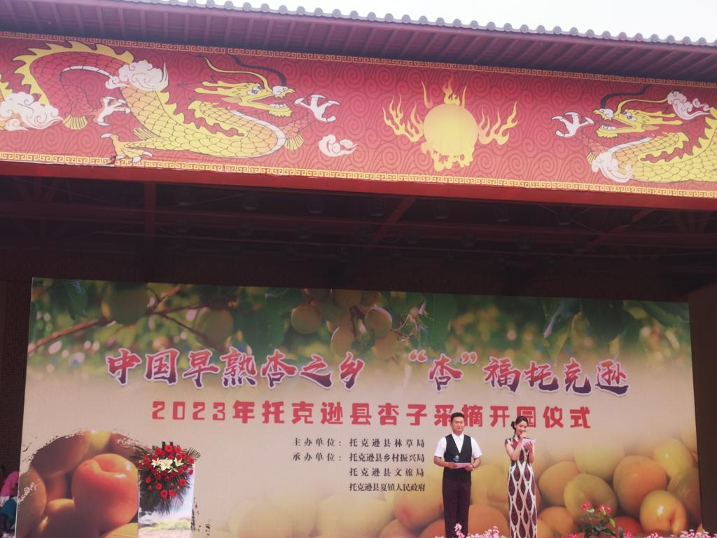 19日,與會代表共同參加了在夏鎮南湖村杏花節主會場舉辦的“中國早熟杏之鄉”、“杏”福托克遜采摘開園儀式,現場品嘗了托克遜杏并觀摩了特色農產品。
