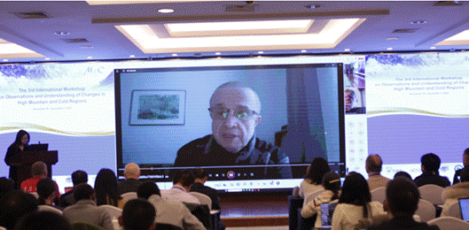 隨后,芬蘭科學和人文院院士馬庫·庫馬拉發(fā)表視頻致辭,他表示亞洲高山區(qū)和北極寒區(qū)關(guān)聯(lián)密切,此次會議為進一步梳理在該方面的科學進展提供了重要契機,他表示將在該領(lǐng)域持續(xù)加強同中國科學研究領(lǐng)域的合作;比利時皇家海外科學院院士菲利普·德馬耶爾線上為大會致辭,他指出在青藏高原、北極地區(qū),甚至在天山附近正在發(fā)生的變化,這不僅對“一帶一路”氣候變化敏感地區(qū)產(chǎn)生重要影響,而且還影響著世界經(jīng)濟及人類生活,因此建立一個密集而可靠的觀測網(wǎng)絡(luò)測量和了解全球氣候的空間和時間變化以及分析環(huán)境變化具有重要意義。