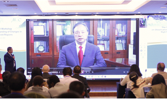 2023年11月29日~12月1日,第三屆高山與極地寒區(qū)觀測與理解國際研討會(HiMAC 2023)在新疆烏魯木齊召開,可持續(xù)發(fā)展大數(shù)據(jù)國際研究中心主任、數(shù)字絲路國際科學計劃主席郭華東院士,芬蘭科學和人文院馬庫·庫馬拉院士,比利時皇家海外科學院院士菲利普·德馬耶爾在線出席開幕式并致辭,國際數(shù)字地球?qū)W會中國國家委員會數(shù)字極地專委會主任委員、中國科學院國家空間科學中心施建成研究員,中國科學院新疆生態(tài)與地理研究所張道遠副所長蒞臨會議并致辭。來自中國、芬蘭、加拿大、蒙古國、德國、日本、比利時、挪威、瑞士、烏茲別克斯坦、塔吉克斯坦等國家的150余專家學者通過線上和線下形式出席會議。