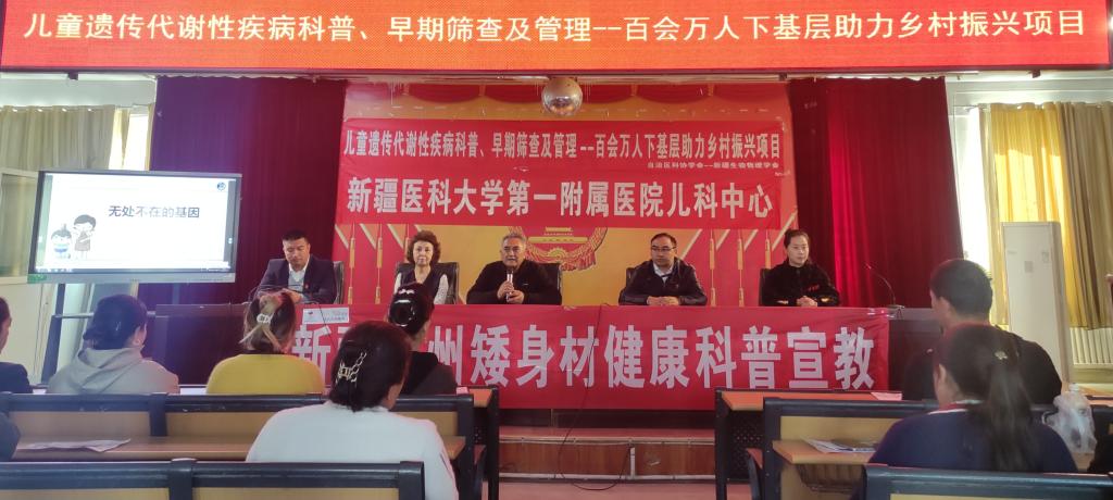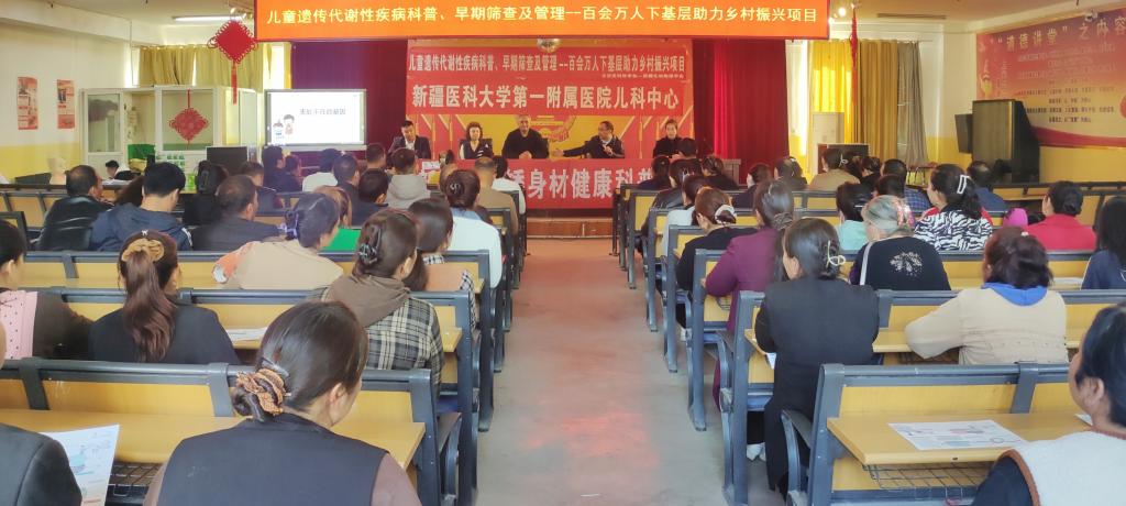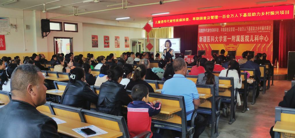 為響應國務院頒布的《健康中國2030》號召,更好地服務南疆地區遺傳代謝病患兒,近日,在兒童遺傳代謝性疾病科普、早期篩查及管理——百會萬人下基本助力鄉村振興項目的支持下,新疆醫科大學第一附屬醫院米熱古麗?買買提教授作為該項目主持人及其團隊成員與該項目負責人阿拉吾丁·阿不都熱依木等組成的自治區科協義診團隊共赴和田地區布亞鄉中心小學和阿亞格蘇勒瓦村開展義診活動。