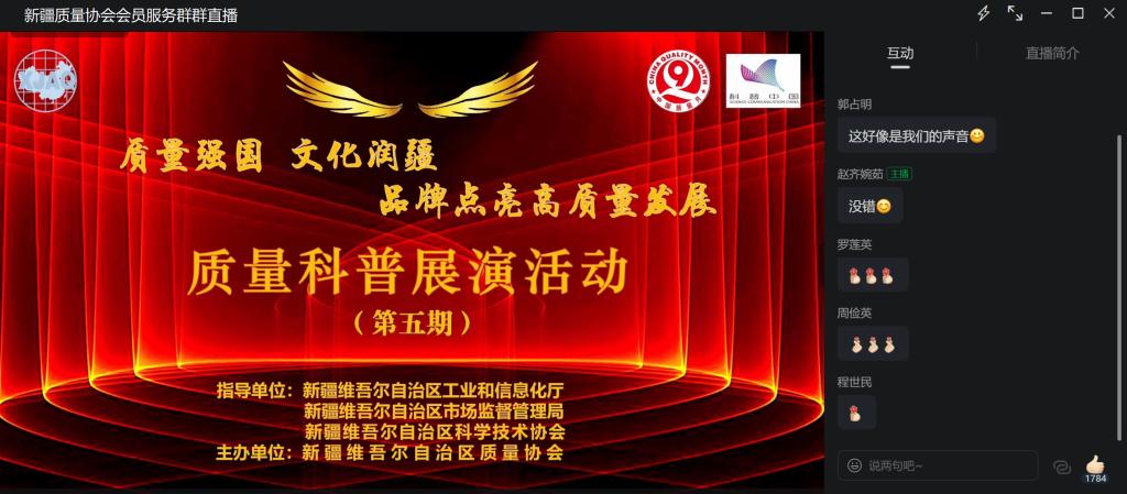 黨的二十大報告指出,高質量發展是全面建設社會主義現代化國家的首要任務。根據2023年度質量科普宣傳工作整體安排,5月31日,新疆質量協會以“質量強國 文化潤疆 品牌點亮高質量發展”為主題組織開展了第五期質量科普展演、有獎知識競答活動。
