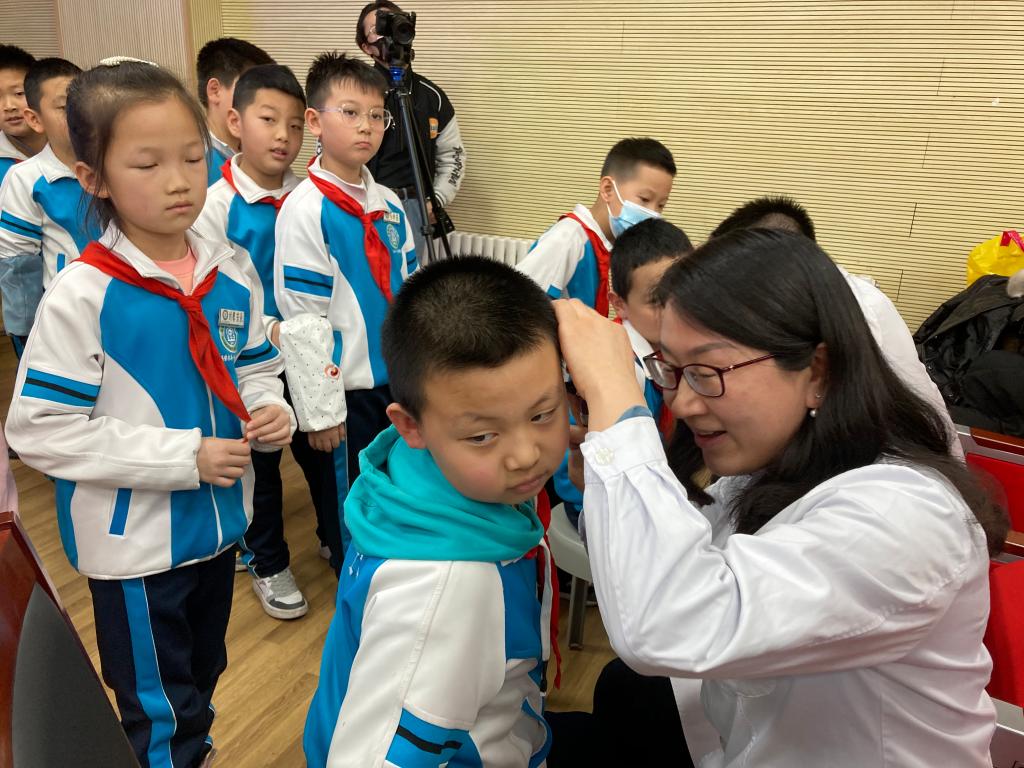 活動(dòng)最后,新疆醫(yī)科大學(xué)第一附屬醫(yī)院耳鼻喉科馮娟主任及其團(tuán)隊(duì),為活動(dòng)現(xiàn)場的學(xué)生們做耳部健康篩查。