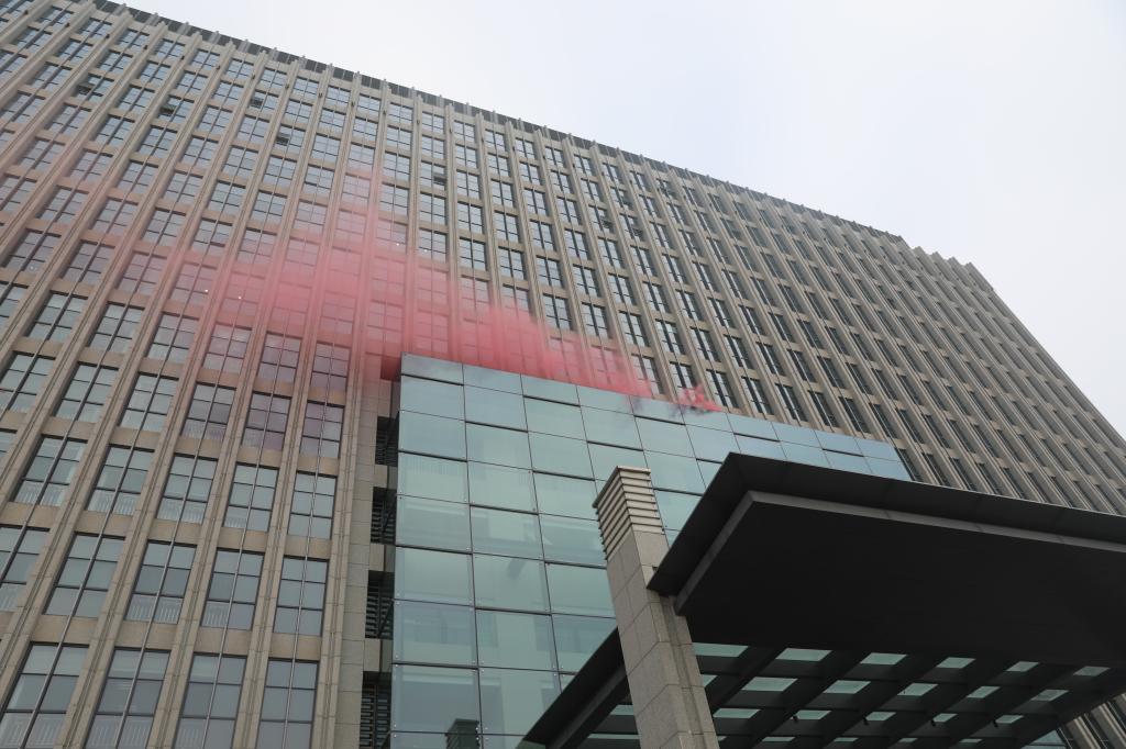 中泰科技樓2023年度滅火及應急疏散演練警情設置:2023年11月25日上午11:00時許,中泰科技樓709辦公室員工誤將未熄滅的煙頭扔至紙簍內,紙簍陰燃并將周邊堆放的紙箱引燃。煙霧觸動煙感報警,消防系統自動控制6-8層卷簾門及電梯門聯動下降,消防廣播啟動播放。709辦公室人員因出口火情嚴重無法逃生,在室外陽臺等待消防登高車救援,其他各樓層人員按照疏散路線及時疏散至指定避難點。疏散過程中有1人腳部扭傷無法自行下樓,需要救治。