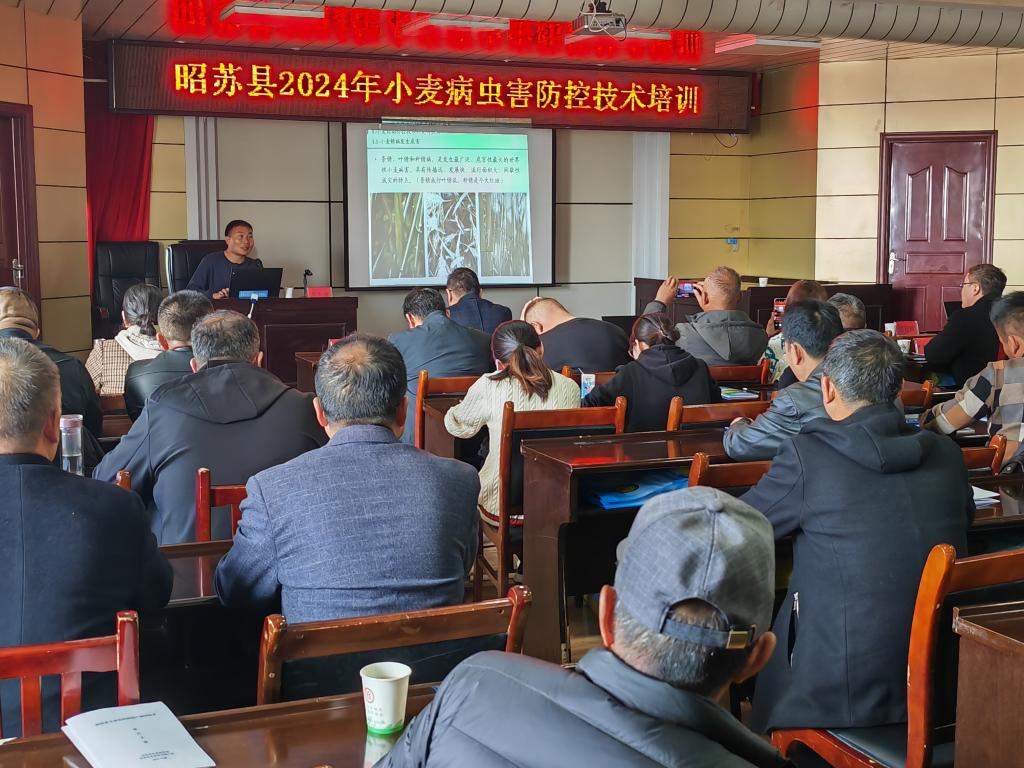 受伊犁州農(nóng)業(yè)技術(shù)推廣總站邀請(qǐng),2024年3月26日-4月2日,新疆植物保護(hù)學(xué)會(huì)副理事長李廣闊研究員、王惠卿研究員,副秘書長高海峰研究員,學(xué)會(huì)專家聶石輝副研究員、孫娜副研究員、魏新政正高級(jí)農(nóng)藝師等專家,先后在伊犁州霍爾果斯市、霍城縣、鞏留縣、新源縣、伊寧縣、伊寧市、尼勒克縣、特克斯縣、昭蘇縣開展冬小麥春季栽培管理及植保防控措施現(xiàn)場(chǎng)觀摩培訓(xùn)會(huì)和春小麥栽培管理及植保防控技術(shù)室內(nèi)培訓(xùn)會(huì)。各縣市共800余名農(nóng)業(yè)技術(shù)骨干、小麥種植戶參加技術(shù)培訓(xùn)活動(dòng)。活動(dòng)邀請(qǐng)了國家小麥產(chǎn)業(yè)技術(shù)體系崗位專家、西北農(nóng)林科技大學(xué)植物保護(hù)學(xué)院院長胡小平教授參加。