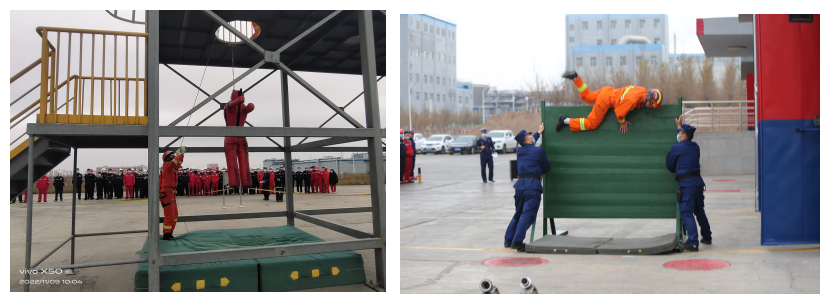 深井救援科目模擬一名職工墜入井內(nèi),根據(jù)現(xiàn)場情況要求以最快的速度將被困人員救出。檢驗消防救援人員的應(yīng)急處置能力、戰(zhàn)術(shù)思維能力和應(yīng)變能力,鍛煉隊員之間的協(xié)調(diào)配合能力。