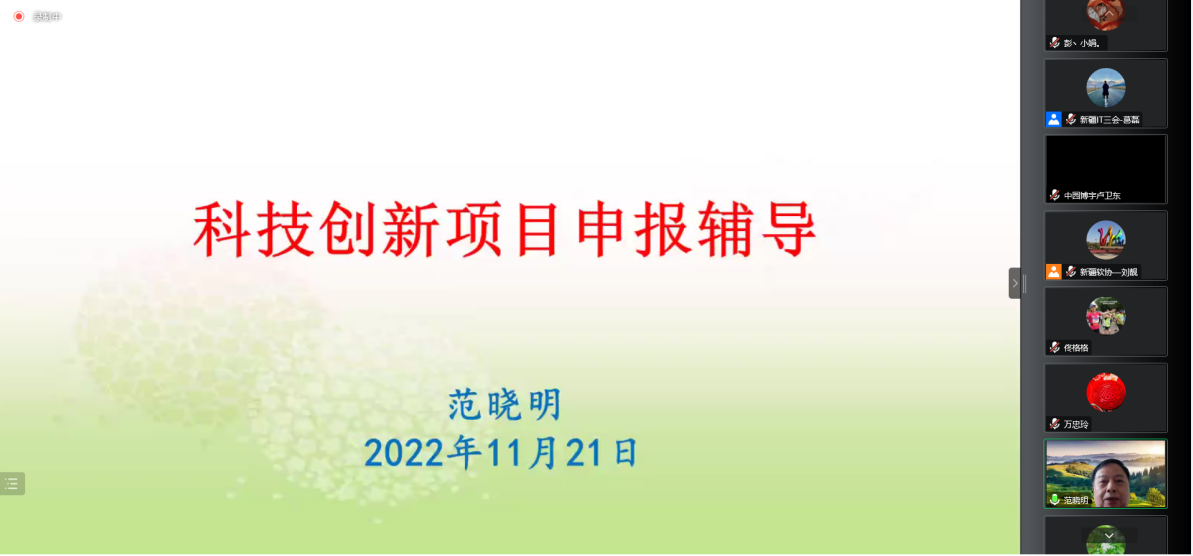 本次研討會,邀請了自治區科技創新方面的資深專家、新疆IT三會專家委員會主任委員蘇國平和副主任委員范曉明圍繞科技項目申報進行詳細講解,意在支持和幫助會員單位準確學習理解自治區科技創新的相關政策,解決會員單位項目申報的難點和痛點,提高申報自治區科技創新專項的能力和水平。