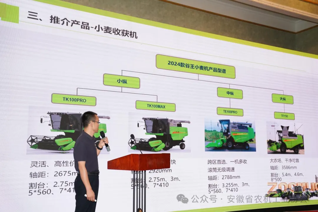 同時本次推介會特別邀請了中聯(lián)農(nóng)業(yè)機械股份有限公司、中科光電色選機械有限公司、中電科蕪湖鉆石飛機制造有限公司、合肥佳富特機器人科技有限責任公司、蚌埠依愛電子科技有限責任公司和安徽云龍糧機有限公司六家省內(nèi)農(nóng)機領(lǐng)軍企業(yè)進行宣傳推介。他們展示了各自的最新創(chuàng)新成果和前沿技術(shù),產(chǎn)品涵蓋了種植、收獲和加工等方面,充分展現(xiàn)了安徽省農(nóng)機行業(yè)的輝煌成就和廣闊前景。