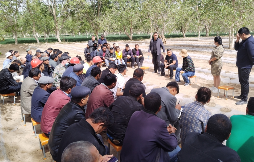 在阿克蘇市、疏勒縣、伽師縣、麥蓋提縣、皮山縣等地,果蔬技術(shù)服務(wù)組根據(jù)各地紅棗、蘋果、核桃等特色林果和蔬菜當(dāng)前生長階段標(biāo)準(zhǔn)化管理措施需求,堅持科技講堂與田間技術(shù)指導(dǎo)相結(jié)合、農(nóng)民需求與現(xiàn)場互動交流相結(jié)合、現(xiàn)場操作與專家講解相結(jié)合,在村委會、田間地頭、果園等不同場所,對當(dāng)前水肥管理、病蟲害防治等方面進行了講解和實操培訓(xùn),同時技術(shù)服務(wù)組專家還通過駐點、蹲點的方式,著力打造以標(biāo)準(zhǔn)化栽培管理為重點的果蔬示范基地,助力形成可復(fù)制、可推廣的科學(xué)管理方式和技術(shù)集成模式,發(fā)揮示范基地聚集效應(yīng)和示范引領(lǐng)作用,為促進南疆果蔬產(chǎn)業(yè)提質(zhì)增效貢獻力量。