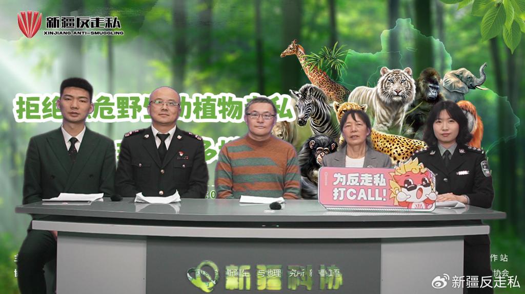 2月28日,新疆野生動植物保護協會聯合自治區打私辦與“全調中心”新疆工作站、烏魯木齊海關、烏魯木齊海關緝私局、中國科學院新疆生態與地理研究所、自治區科協等單位,開展以“拒絕瀕危野生動植物走私 保護全球生物多樣性”為主題的線上直播座談活動。通過科普瀕危野生動植物保護知識,揭示走私對瀕危野生動植物的危害性,提升群眾對瀕危野生動植物保護的意識,增強群眾對走私行為的警惕性,積極引導全民自覺抵制瀕危野生動植物走私,共同維護生物多樣性。截止當日線上直播觀看量達25.6萬人次。