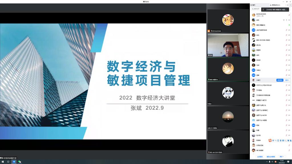 9月3日,由新疆計(jì)算機(jī)學(xué)會(huì)主辦的“新時(shí)代下的新格局,新機(jī)遇”-數(shù)字大講堂第二期在線上成功舉辦。邀請(qǐng)了新疆“IT三會(huì)”專家委員會(huì)委員高級(jí)工程師張斌圍繞“數(shù)字經(jīng)濟(jì)與敏捷項(xiàng)目管理”,給大家?guī)砻艚輰?shí)戰(zhàn)分享,幫助大家更好的理解敏捷項(xiàng)目管理理論及方。本次活動(dòng)吸引了來自會(huì)員企業(yè)中的中高層管理、項(xiàng)目管理、技術(shù)等敏捷愛好者近300多人的關(guān)注與觀看。