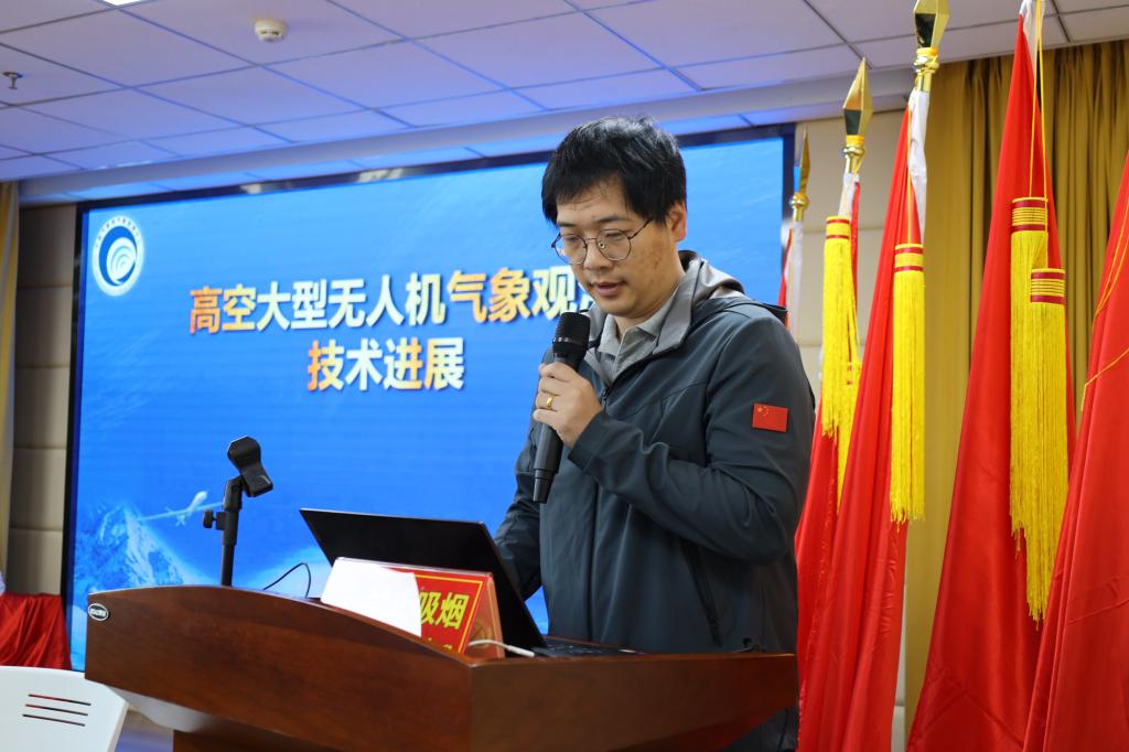 中國(guó)氣象局氣象探測(cè)中心援疆干部、高級(jí)工程師郭然博士作《高空大型無(wú)人機(jī)氣象探測(cè)技術(shù)進(jìn)展》的報(bào)告。