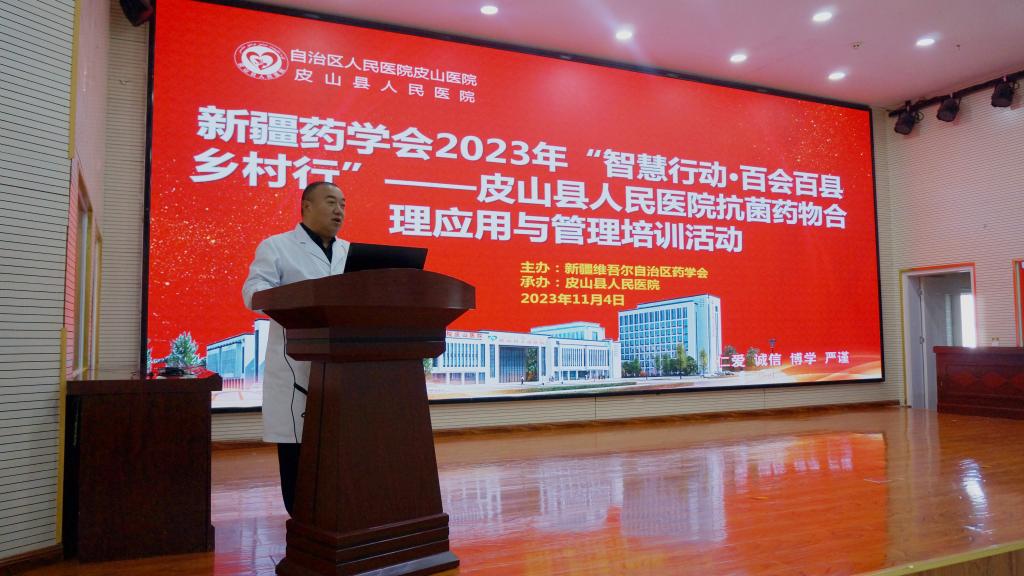 南疆基層醫院對抗菌藥物的如何規范化管理和使用有迫切需求,11月4日上午,新疆藥學會在皮山縣人民醫院舉辦了“抗菌藥物合理應用與管理培訓”活動,各科室醫護人員等共計100余人參加。皮山縣人民醫院副院長艾則孜·努爾麥麥提在致辭中表示,非常感謝新疆藥學會千里迢迢來到皮山縣人民醫院舉辦本次培訓活動,提高了皮山縣人民醫院抗菌藥物臨床應用水平,增強了皮山縣人民醫院醫護人員安全用藥意識,為保障人民健康起到了很好的作用。本次培訓班開幕式由皮山縣人民醫院藥劑科主任阿卜杜米吉提·阿布來提主持。