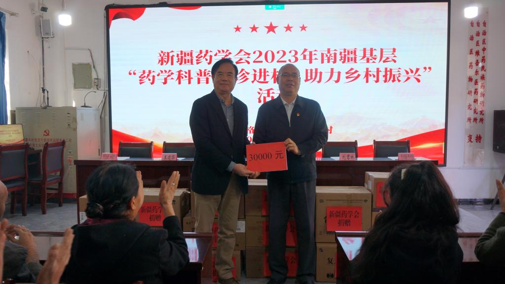 在捐贈儀式上,自治區衛生健康委駐村工作前方臨時黨委書記郭偉江巡視員表示,非常感謝新疆藥學會為阿孜干阿勒迪村捐贈的價值3萬元的常用藥品,在即將到來的冬天為村民們送來了溫暖,更是為鄉村振興工作貢獻了學會力量。新疆藥學會黨支部書記、理事長顧政一研究員表示在自治區衛生健康委、自治區醫管中心的領導下,新疆藥學會將深入持久的把鄉村振興工作開展下去,真心實意為南疆村民們服務,改善缺醫少藥狀況。