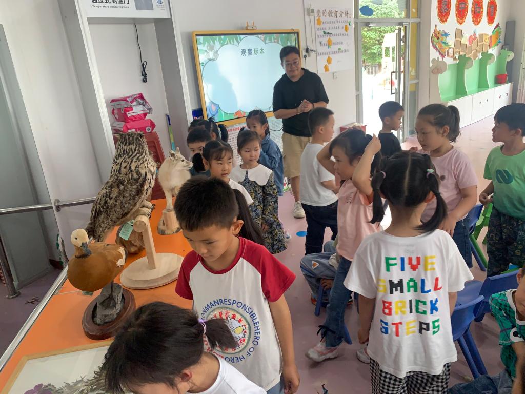 在活動中,孩子們有序排隊觀察標本,這些動植物標本很多孩子在動物園中都未曾見過,有些動物只在電視里看到過。