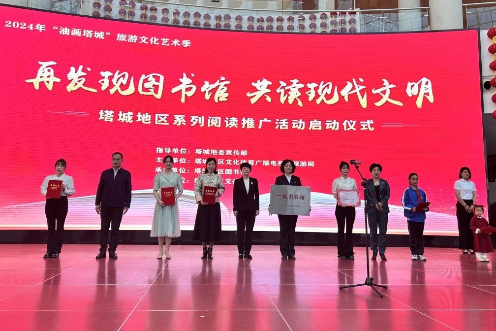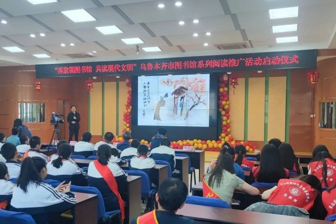4月23日,“再發現圖書館 共讀現代文明”系列閱讀推廣活動啟動儀式在新疆圖書館正式啟動。活動由自治區黨委宣傳部指導,自治區文化和旅游廳主辦,新疆地區各級公共、高校、科研院所圖書館聯合舉辦,新疆圖書館設立主會場,新疆大學圖書館、哈密市圖書館、和田地區圖書館、塔城地區圖書館、和靜縣東歸圖書館、富蘊縣圖書館、九州通藥業等設分會場,全疆各地圖書館同步拉開2024年全民閱讀帷幕。