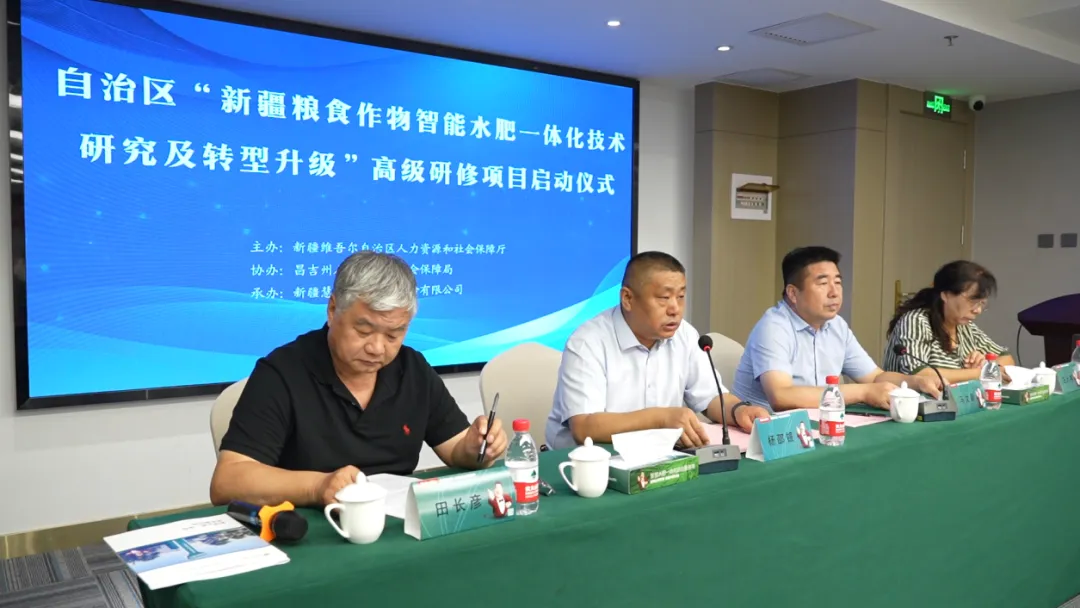 6月27日-7月1日,新疆土壤與肥料學會理事長、中國科學院新疆生地所田長彥研究員與新疆土壤與肥料學會理事、慧爾農業(yè)集團黨總支書記馬文新高級經濟師在昌吉國家農高區(qū)參加了由自治區(qū)人社廳主辦,昌吉州人社局協(xié)辦,新疆土壤與肥料學會副理事長單位新疆慧爾農業(yè)集團股份有限公司承辦的自治區(qū)“新疆糧食作物智能水肥一體化技術研究及轉型升級”高級研修班。昌吉州人社局黨組副書記、局長楊邵銀,中國農業(yè)大學左元梅教授和來自全疆各地州市的50名農技專家、農業(yè)龍頭企業(yè)代表、科研院校代表、農業(yè)從業(yè)人員齊聚一堂,針對研修內容開展學習交流。