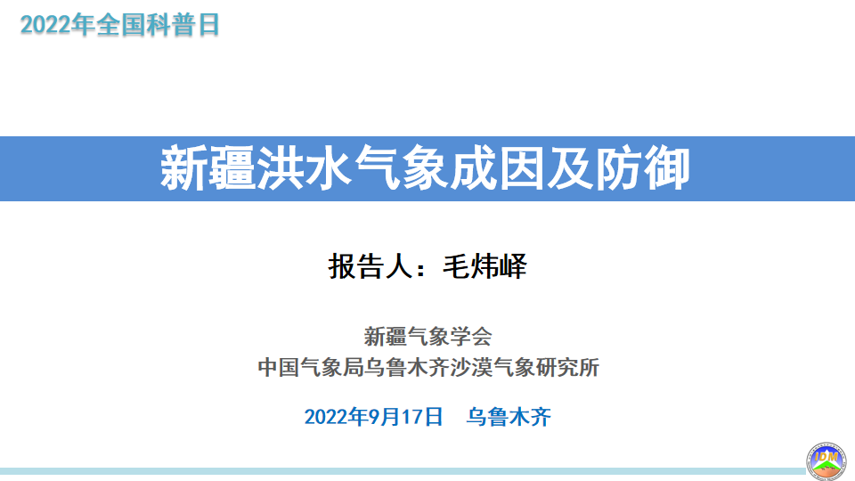 由新疆維吾爾自治區科學技術協會、新疆氣象學會、中國氣象局烏魯木齊沙漠氣象研究所共同主辦的,毛煒嶧研究員主講的主題為“新疆洪水氣象成因及防御”的講座也在線上如期開講。