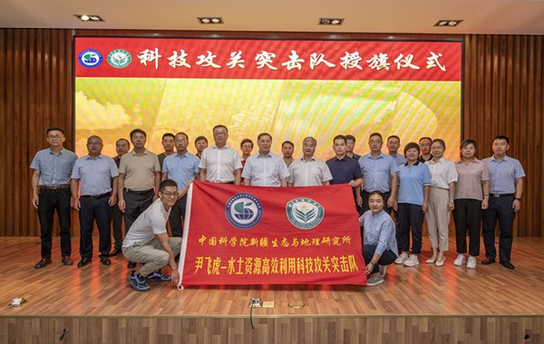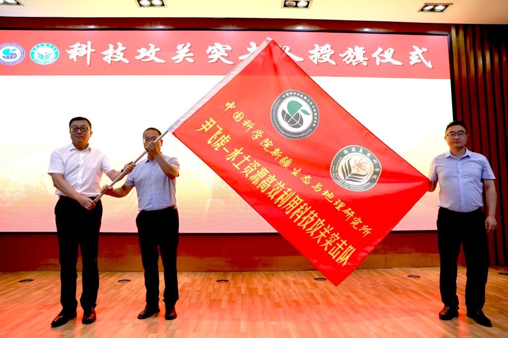 8月27日,中國科學院新疆生態與地理研究所舉行“尹飛虎水土資源高效利用科技攻關突擊隊”授旗儀式。新疆土壤與肥料學會監事長尹飛虎院士擔任“尹飛虎水土資源高效利用科技攻關突擊隊”隊長,學會理事長田長彥擔任副隊長,秘書長買文選擔任秘書。