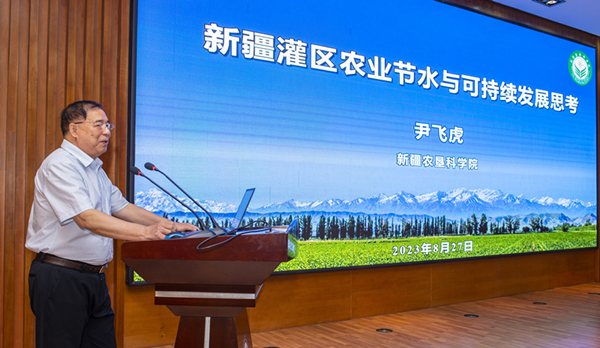 在授旗儀式上,尹飛虎院士作了《新疆灌區農業節水與可持續發展的思考》的專題報告,將理論與實踐相結合,聚焦新疆灌區農業節水與可持續發展問題,分析研判了未來高效節水條件下農業水資源時空格局與利用需求,為干旱類型區現代節水農業可持續高質量發展和區域生態文明建設提出了新路徑、新方法。