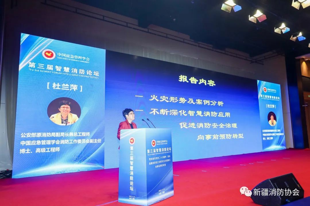 為總結推廣各地近年來建設、應用“智慧消防”手段提升火災防控和滅火救援能力的成效和經驗,促進智慧消防高質量發展,著力在防范化解重大安全風險方面發揮更大作用,2023年11月13日,由中國應急管理學會主辦的“第三屆智慧消防論壇”在西安舉辦。論壇由公安部原消防局政治委員、中國應急管理學會副會長、中國應急管理學會消防工作委員會主任王沁林主持,國家減災委員會秘書長、應急管理部原副部長、中國災害防御協會會長鄭國光,原國務院參事、原國務院應急管理專家組組長、國家減災委專家委員會原副主任閃淳昌,原公安部消防局副局長兼總工程師、中國應急管理學會消防工作委員會副主任、博士、高級工程師杜蘭萍及全國部分省級協會負責人、消防工作委員會委員、專家代表出席,新疆消防協會會長張照雄和秘書長閆懷宣等應邀出席。