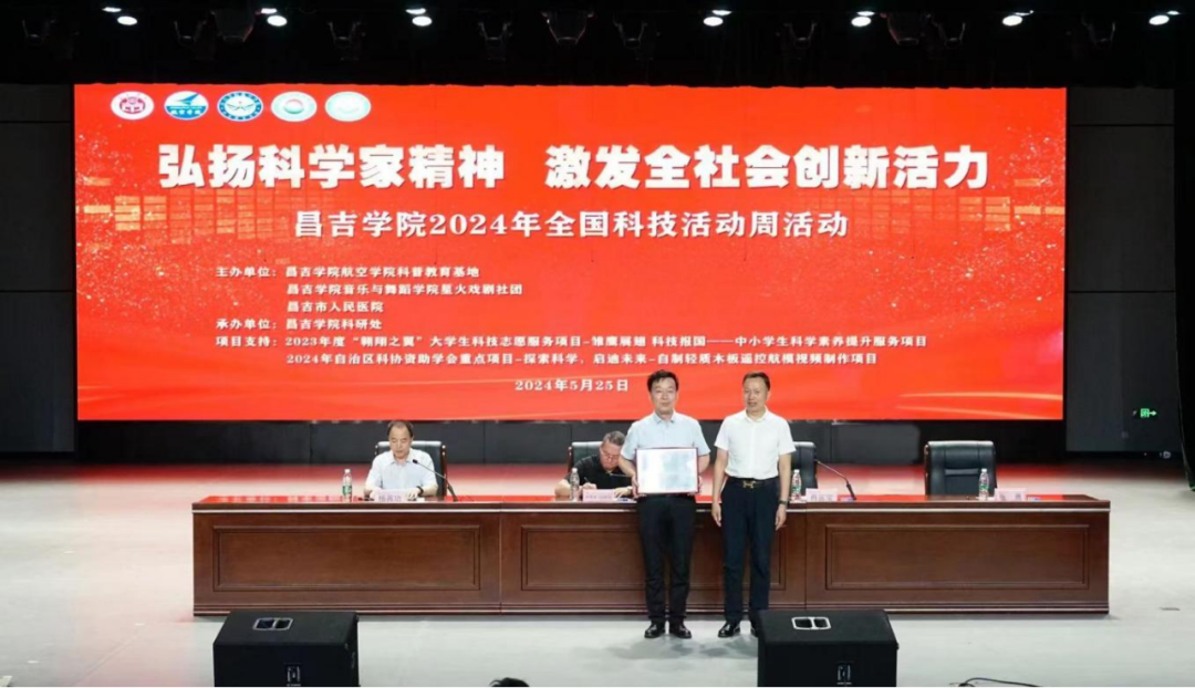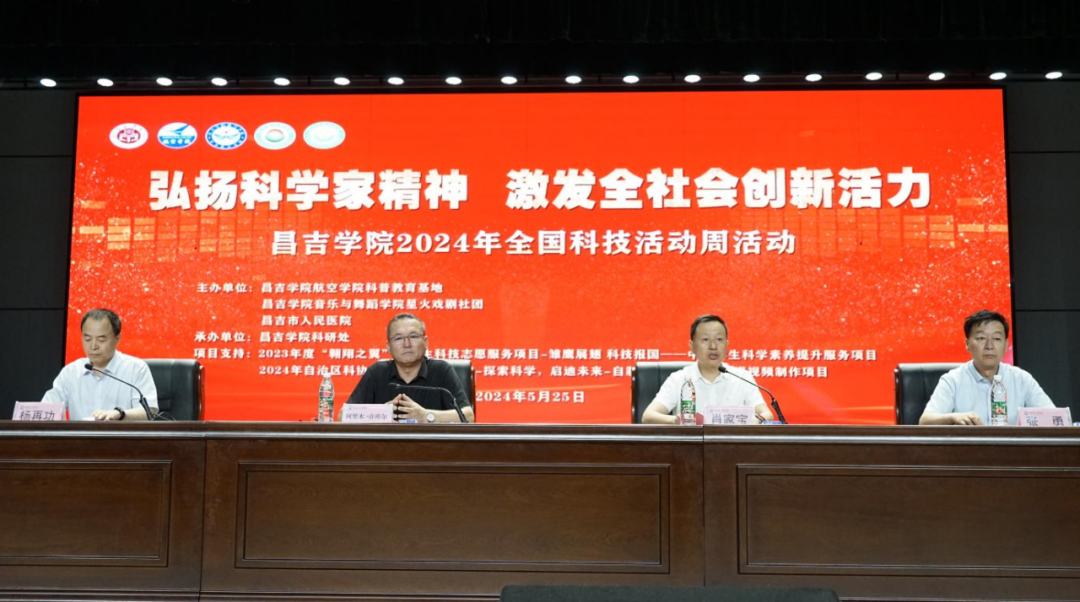 5月25日上午,由昌吉學院航空學院科普教育基地、音樂與舞蹈學院星火戲劇社團聯合昌吉市人民醫院主辦,學校科研處承辦的“弘揚科學家精神 激發全社會創新活力”昌吉學院2024年科技活動周開幕式在新校區圖書館一樓多功能報告廳舉行。學校黨委常委、副校長阿里木·許庫爾出席并致辭,昌吉市科學技術局黨組副書記、局長肖家寶主持開幕式。昌吉市衛生健康委黨組副書記、主任楊再功,昌吉市人民醫院黨委書記張勇,航空學院黨委副書記、紀委書記王曉莉等領導應邀出席。