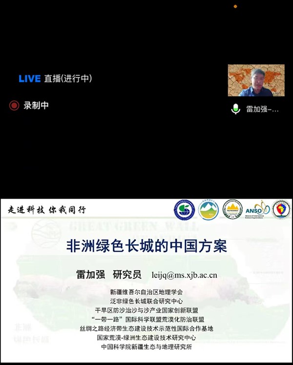 雷加強的“非洲綠色長城的中國方案”報告,圍繞非洲綠色長城總體狀況、非洲綠色長城目前動向、對非合作研究主要進展和非洲綠色長城方案建議四個方面論述了建立非洲綠色長城的原因和意義,展現了中國積極履行荒漠化防治國際公約締約國責任的形象。最后,雷加強代表新疆全體科技工作者沉痛悼念我國著名的沙漠與風沙地貌學家、國家荒漠化防治專家夏訓誠先生,緬懷他開創新疆沙漠化防治研究事業和開拓中非荒漠化防治科技合作的重大功績,表示將繼承和發揚夏訓誠先生嚴謹治學、使命擔當、獎掖后學的老科學家精神,在荒漠化防治領域再創佳績。