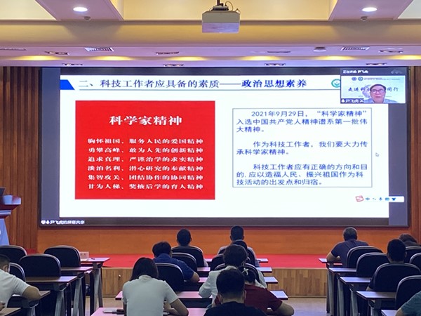 尹飛虎院士的“寄語科技工作者”報告,從中國青年的歷史使命和黨中央的殷切希望講起,指出青年科技工作者應該具備的政治思想素質和基本業務素養,并分享了個人的科研歷程、科技創新成果和未來農業科技愿景。他希望廣大科技工作者奮勇爭先,發揚求實、創新、協作、自律精神,共同擔起時代賦予的光榮使命,為實現高水平科技自立自強貢獻力量。