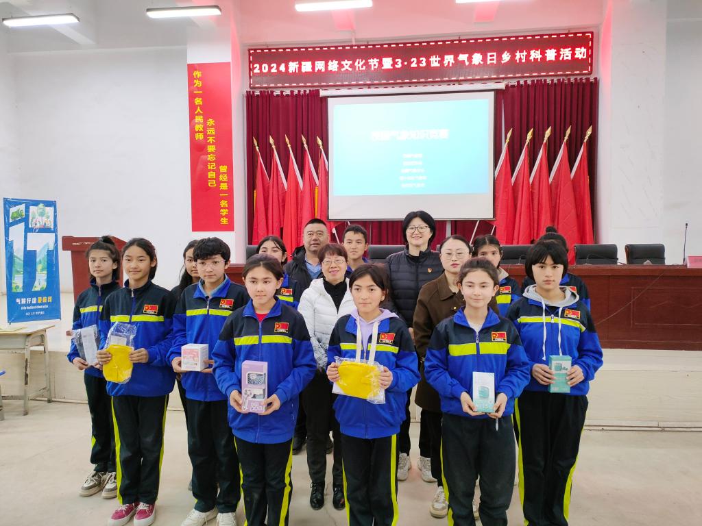 3月15日,新疆氣象學會聯合新疆氣象局“訪惠聚”駐村工作隊、喀什地區氣象局、伽師縣氣象局,結合2024年世界氣象日“ 氣候行動最前線 ”的主題,在伽師縣克孜勒蘇鄉中學、勒格勒德瑪村開展氣象科普進校園、進農村活動。