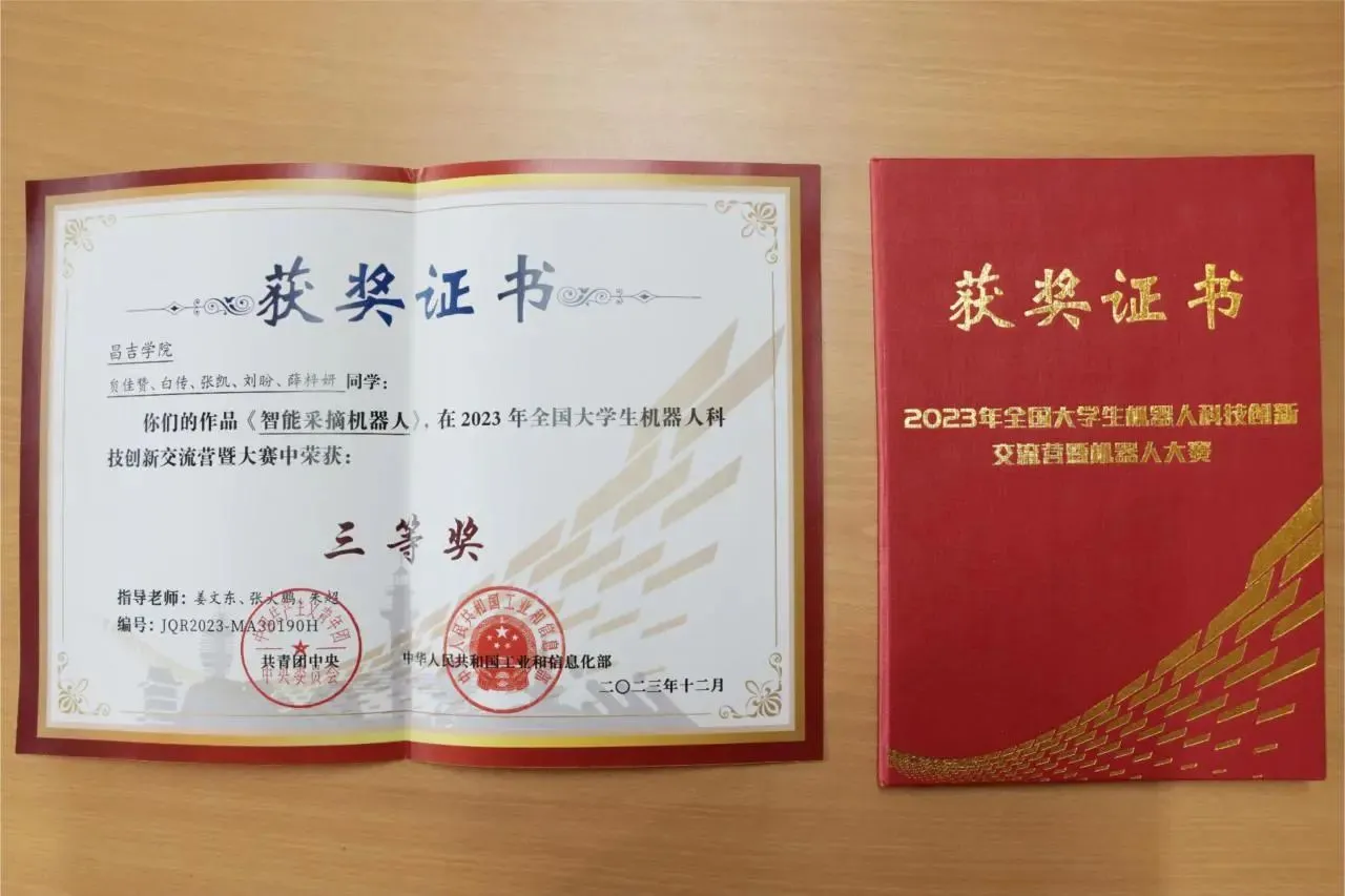 2023年全國大學(xué)生機器人科技創(chuàng)新交流營暨機器人大賽由共青團中央、工業(yè)和信息化部共同主辦。本屆大賽搭建工業(yè)機器人、個人及家用服務(wù)機器人、公共服務(wù)機器人、特種機器人、其他應(yīng)用領(lǐng)域機器人等5大賽道,吸引全國30個省、自治區(qū)、直轄市及新疆生產(chǎn)建設(shè)兵團431所高校的1017件作品參賽,共有221件作品進入終審決賽,大賽組委會評出特等獎50個、一等獎74個、二等獎94個、三等獎300個。昌吉學(xué)院能源與控制工程學(xué)院學(xué)生高興林、張建文、楊簫如、劉歡,在苗珊、張大鵬、米湯老師指導(dǎo)下完成的“智慧灌溉系統(tǒng)”;學(xué)生高興林、李保偉、肖國卿、奎寶慧、王晶晶,在張大鵬、郭福濤、韓晨老師指導(dǎo)下完成的“光伏板清潔機器人”;學(xué)生贠佳贊、白傳、張凱、劉盼、薛梓妍,在姜文東、張大鵬、朱超老師指導(dǎo)下完成的“智能采摘機器人”,榮獲三等獎。