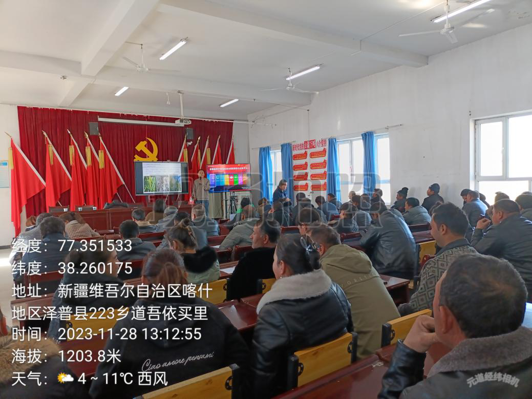2023年11月22日-23日,11月27日-29日,新疆植物保護(hù)學(xué)會(huì)組織新疆農(nóng)業(yè)科學(xué)院植物保護(hù)研究所糧食作物病蟲害防控研究室主任高海峰研究員在喀什地區(qū)澤普縣、莎車縣開展小麥重大有害生物綜合防控技術(shù)培訓(xùn)工作。