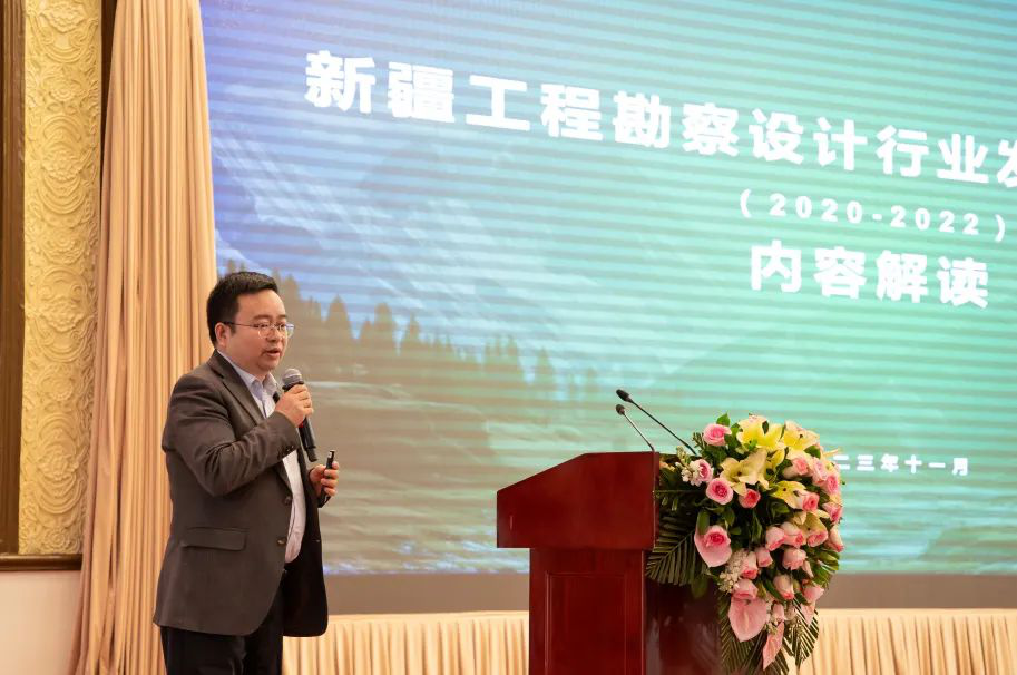 此外,新疆兵團勘測設計院(集團)有限責任公司總經理宋劍鵬和新疆市政建筑設計研究院有限公司董事長白鋼作為會員單位院長代表進行了專題發言,分享了各自單位在勘察設計領域的經驗和成果,展示了新疆勘察設計行業的創新與發展。