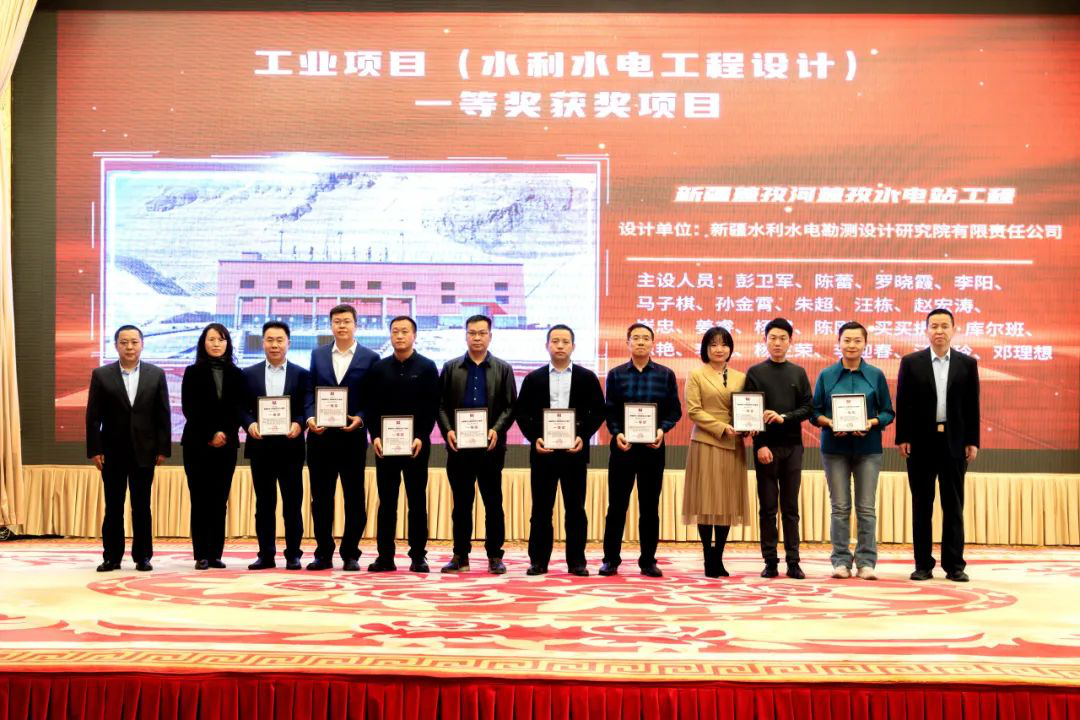 工業項目(水利水電工程設計、交通工程設計、電力工業工程設計、石油和化工工業工程設計、建材工業工程設計)一等獎獲獎項目代表及頒獎嘉賓合影