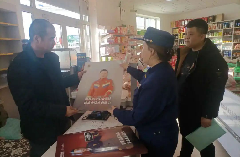 隨后,宣傳人員以進商戶宣傳的方式,將宣傳手冊、海報等消防宣傳資料發(fā)放到商戶的手中,講解“冬季天氣寒冷干燥,用火用電用氣劇增,是火災事故的高發(fā)期,一定要高度重視起來,如果不幸發(fā)生火災,切記要第一時間逃離火災現(xiàn)場并及時撥打119,切勿貪戀錢財......”為廣大村民商戶全面普及了冬季防火知識,引導大家養(yǎng)成良好的消防安全習慣。