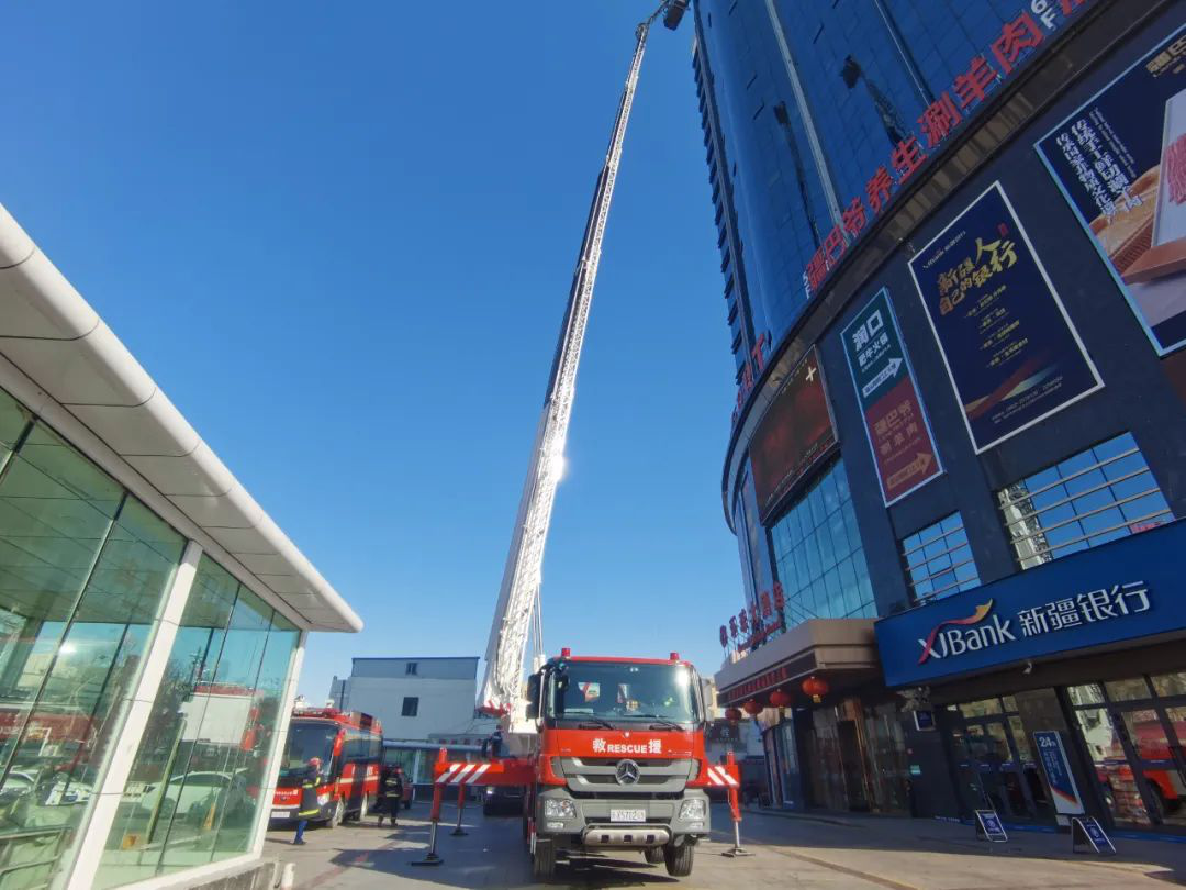 演練假設多業(yè)態(tài)經(jīng)營場所環(huán)球國際發(fā)生火災,內部可燃物較多,燃燒速度較快,產(chǎn)生大量濃煙,并迅速向樓上蔓延擴散,造成多名人員被困。支隊指揮中心接到報警后,立即調派轄區(qū)北京路消防救援站、木卡姆大道消防救援站等力量到場處置,支隊全勤指揮部遂行出動,趕赴現(xiàn)場指揮滅火救援行動。