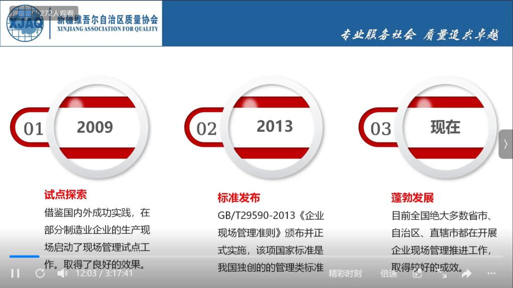 為引導(dǎo)和幫助各類組織不斷夯實(shí)現(xiàn)場(chǎng)管理基礎(chǔ),實(shí)現(xiàn)質(zhì)量提升、效率提高,持續(xù)提升核心競(jìng)爭(zhēng)能力。11月3日,新疆質(zhì)量協(xié)會(huì)以線上形式組織開(kāi)展了企業(yè)現(xiàn)場(chǎng)管理公益培訓(xùn)。