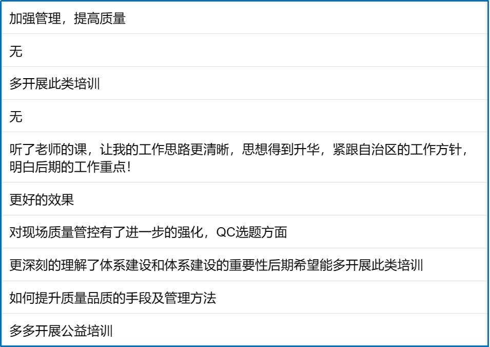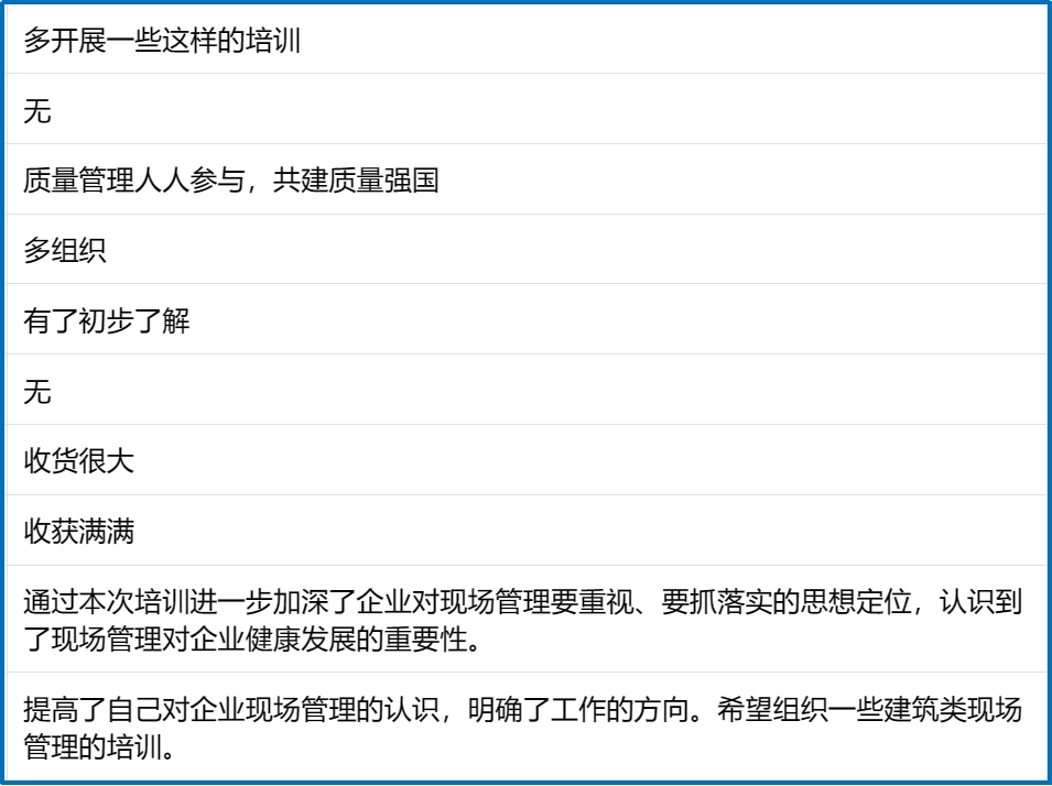 我區(qū)部分企業(yè)現(xiàn)場(chǎng)管理負(fù)責(zé)人、質(zhì)量管理人員代表共計(jì)250余人參加培訓(xùn)。為企業(yè)掌握現(xiàn)場(chǎng)管理方法、培養(yǎng)各類管理人才,提升企業(yè)創(chuàng)新、創(chuàng)造、改進(jìn)能力奠定基礎(chǔ)。