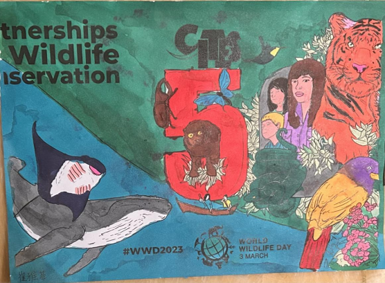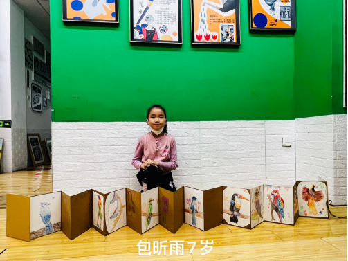 (包昕雨,7歲,《你好!鳥兒們!》,彩墨藝術教