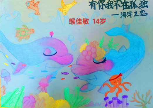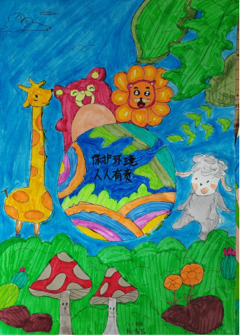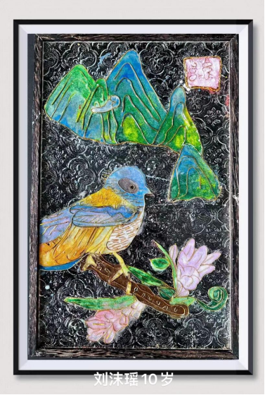 (劉沫瑤,10歲,《鳥鳴山澗》,彩墨藝術教育)